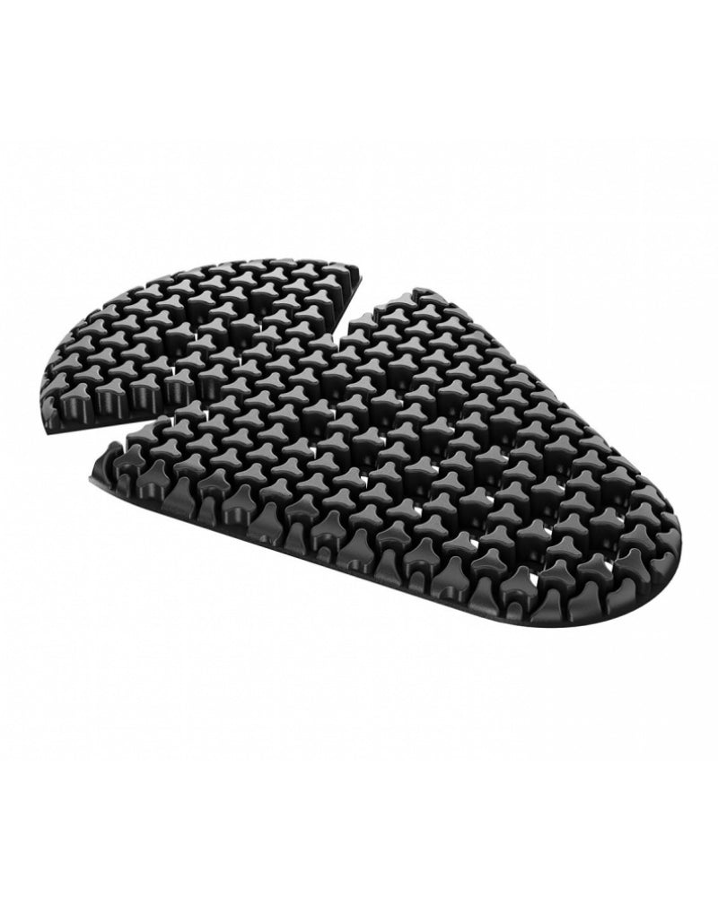 While your first instinct may be to insert the armor with the interlocking part away from you, it is actually designed to have the solid part as the outer surface. The channels between the polygon “nubs” allow for more airflow to the skin, which leads to a more comfortable ride overall.